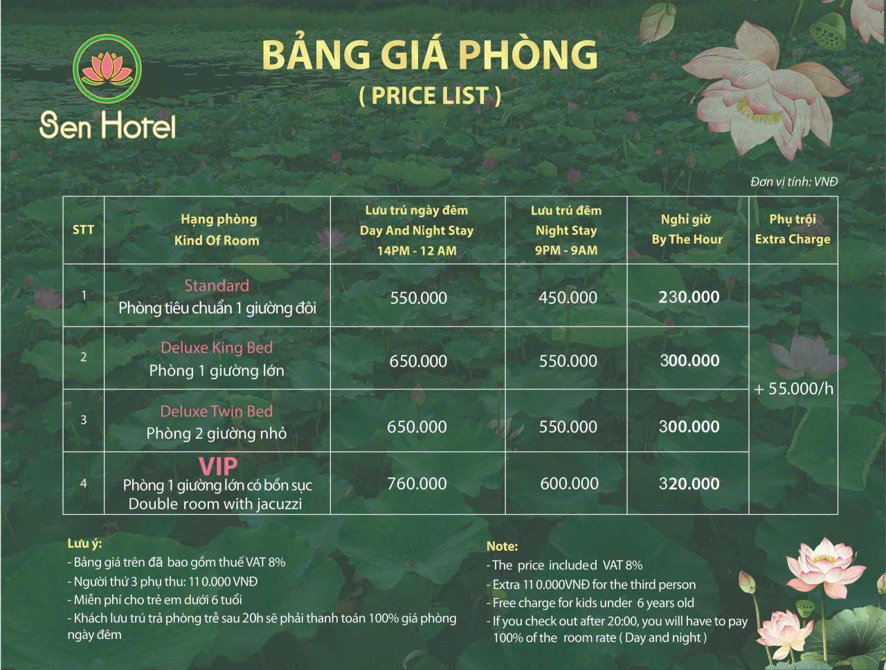 1. Giá phòng tại Sen Hotel hiện nay